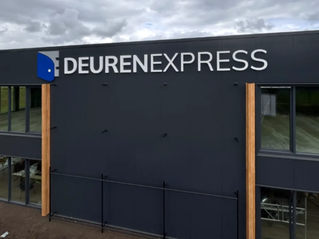 Logo in onverlichte doosletters voor Deurenexpress in Drachten