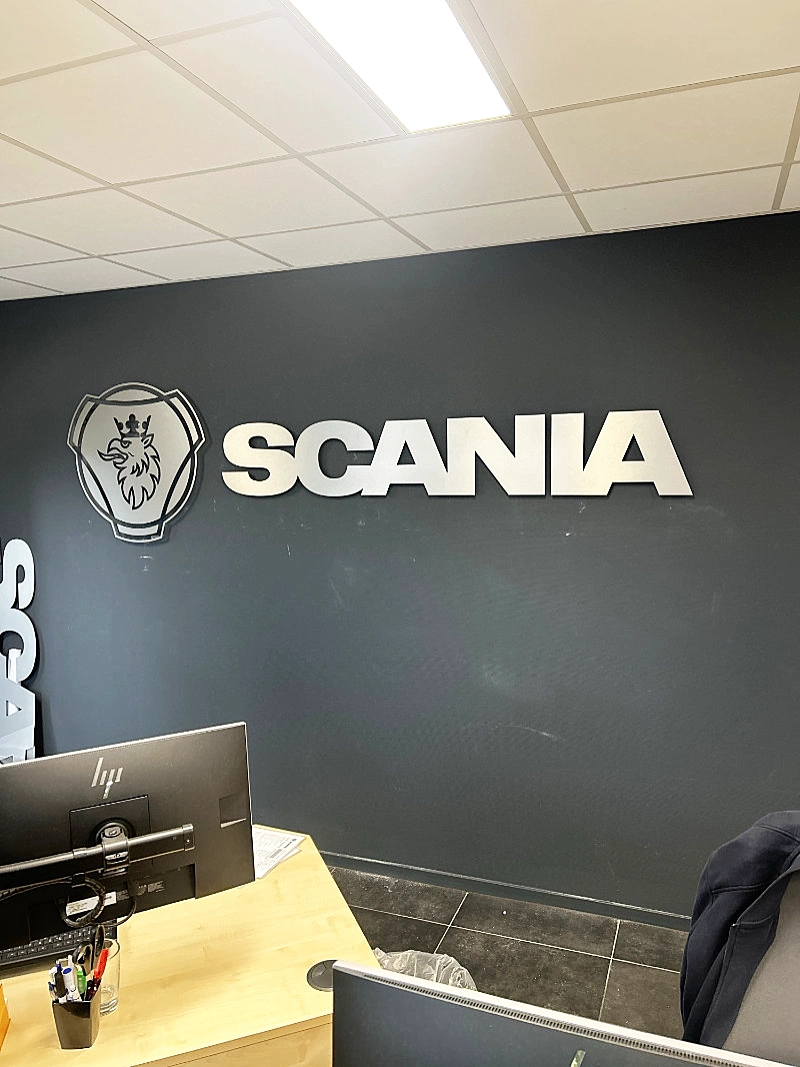 Voor Scania een verlicht wandbord entree en freesletters op achterwand.